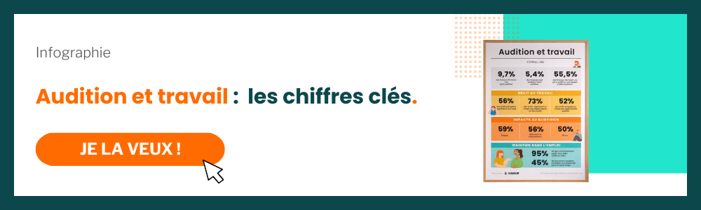 → Proposez un parcours simple et connu de tous : signalement à un référent (RH/manager), consulter la médecine du travail, orientation vers un ORL ou un audioprothésiste, essai d’aides auditives, puis mise en place des aménagements sur le poste (consignes écrites, salle calme, casque de communication, etc.).